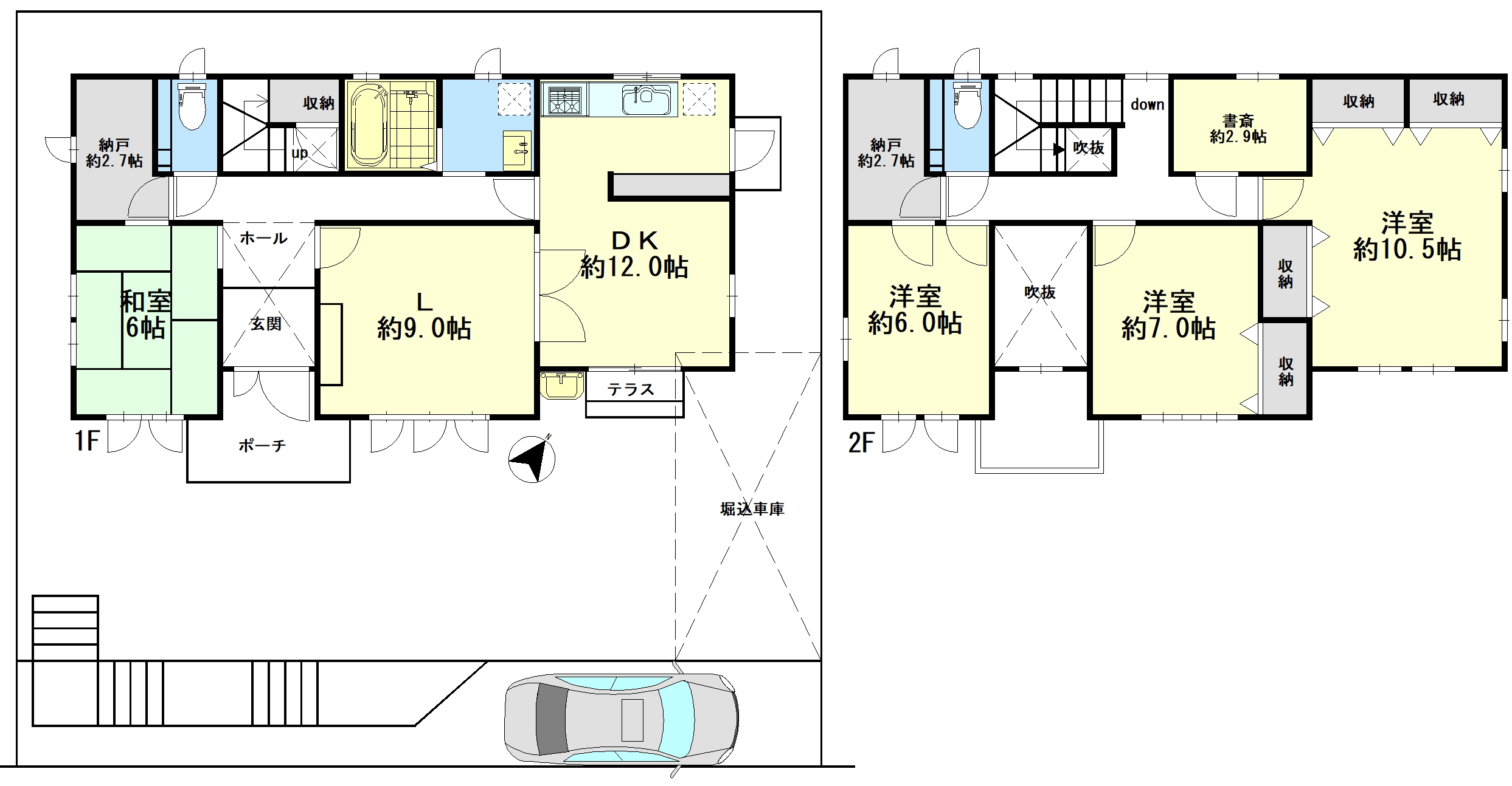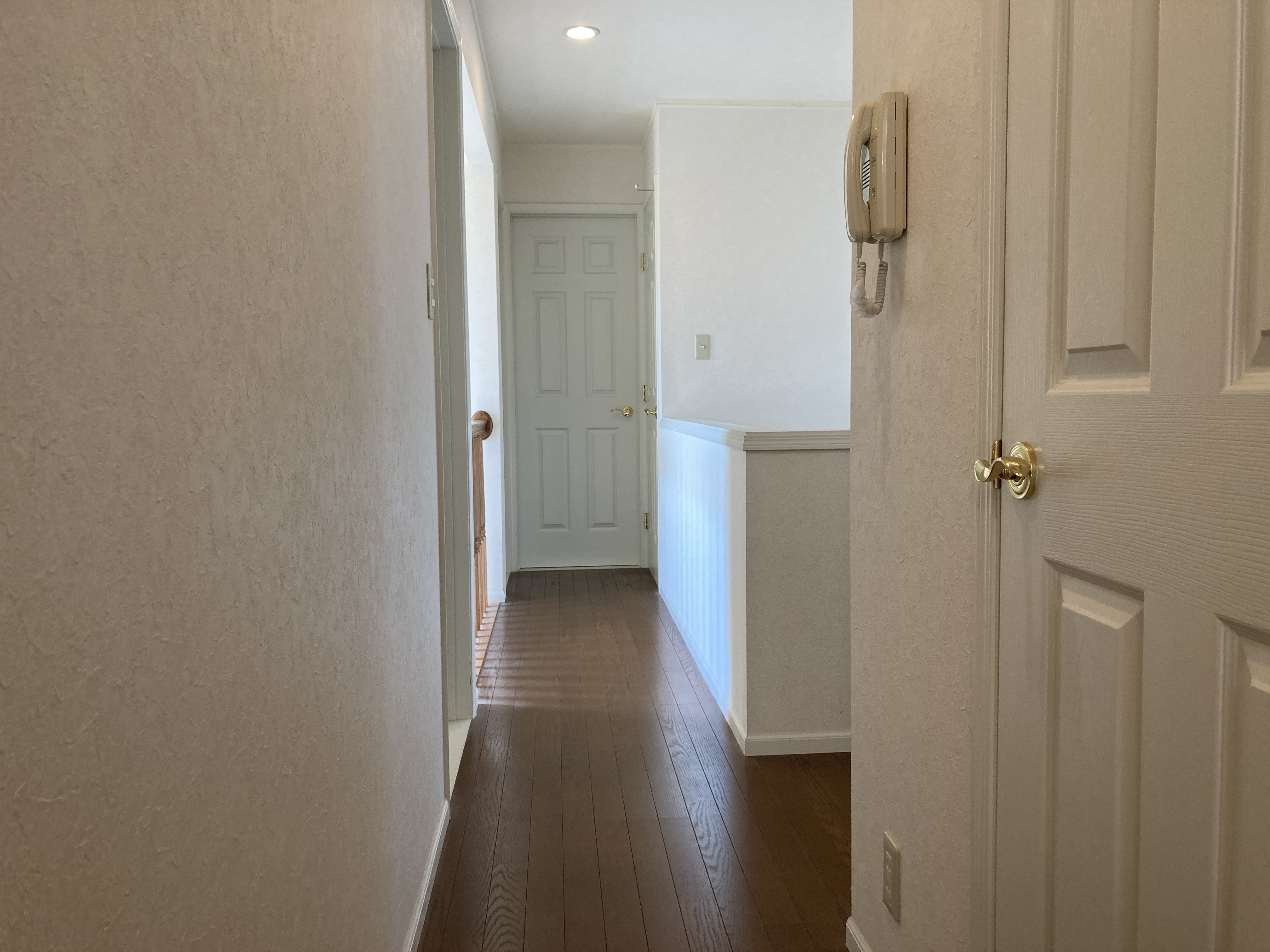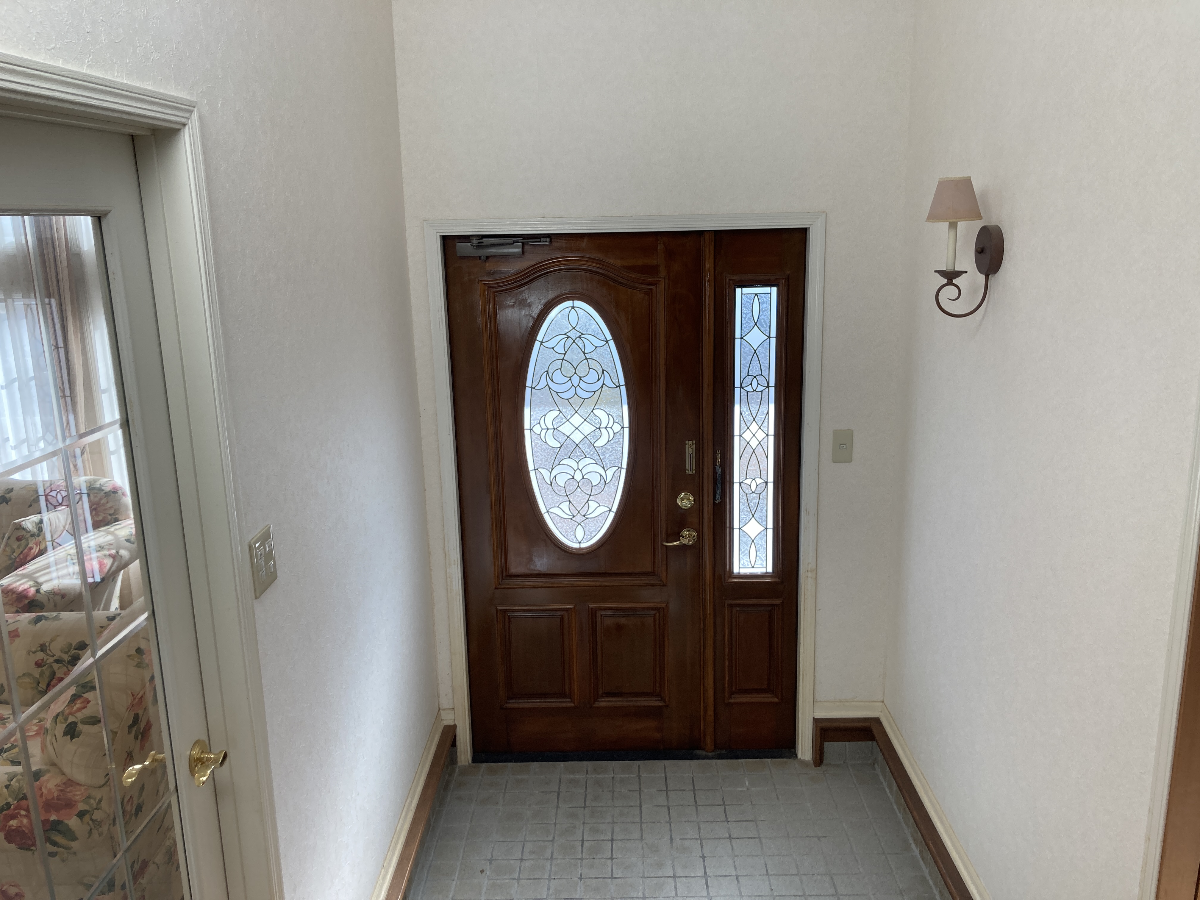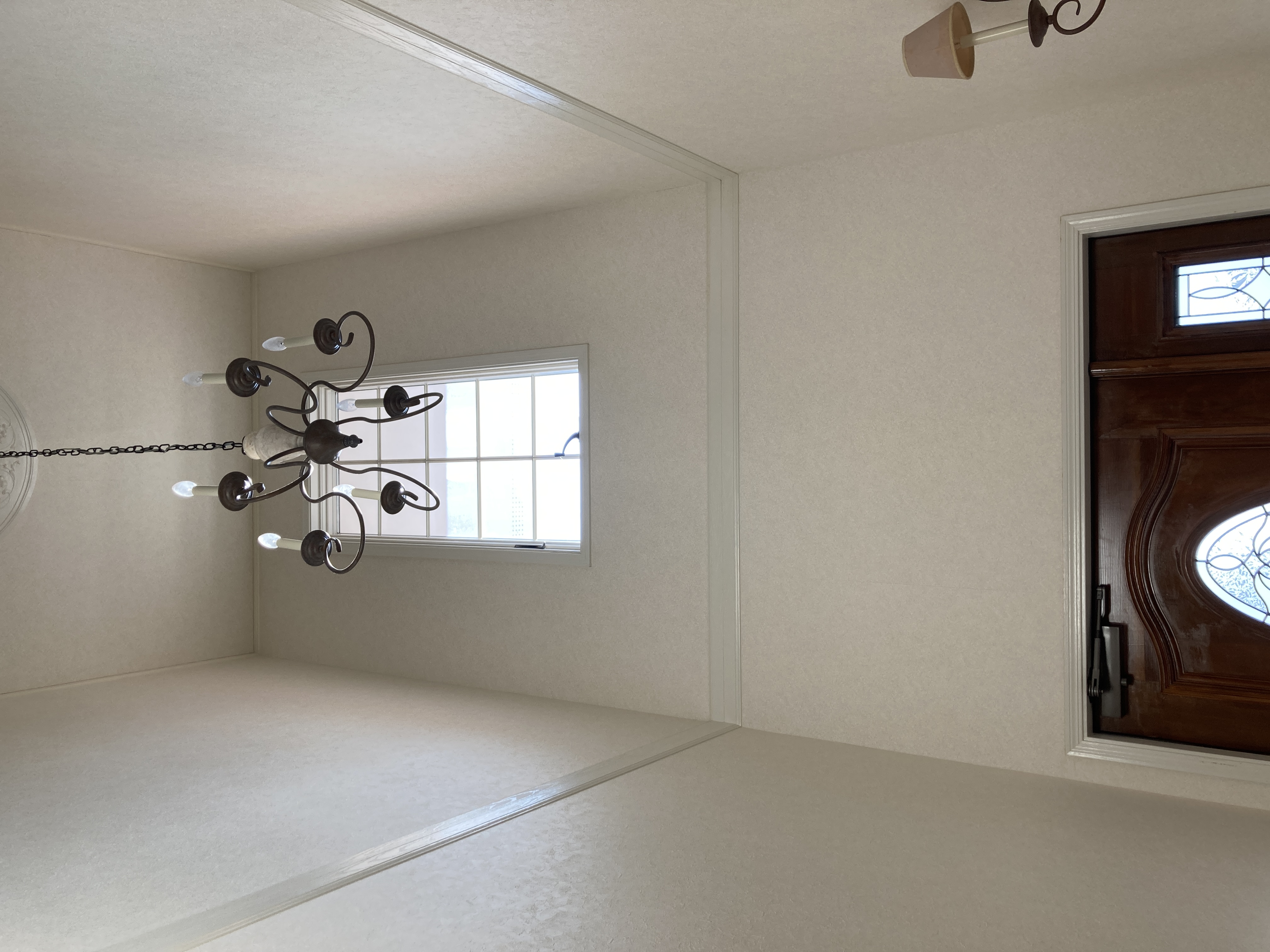 三井ホーム施工の注文住宅。車2台駐車可能。玄関を開けた瞬間、吹き抜けのある開放的な空間が広がります。