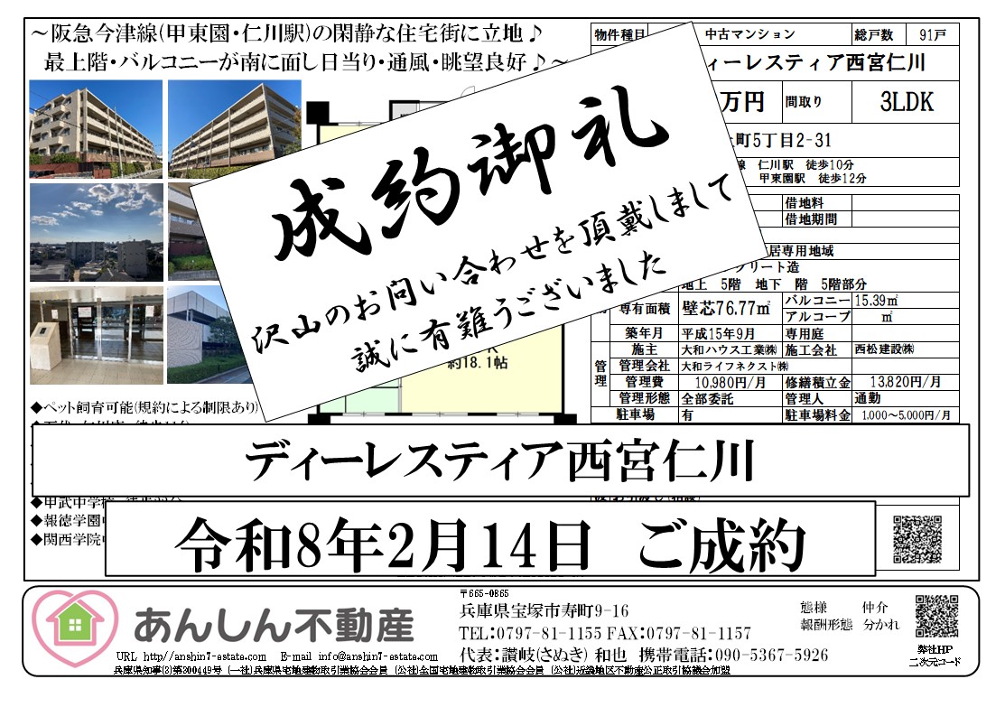 成約御礼 阪急日生ニュータウン・花咲く丘の街F棟