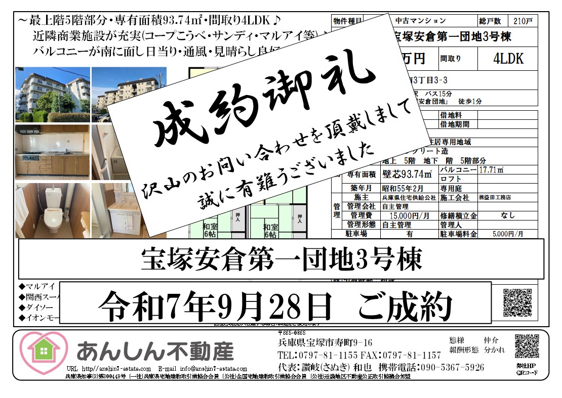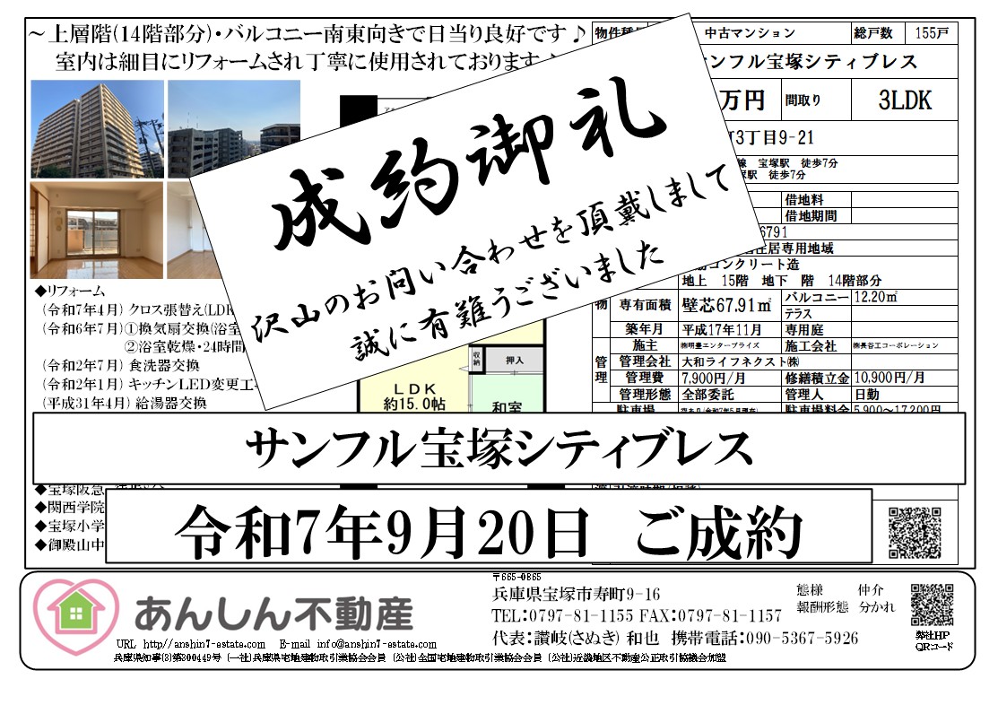 成約御礼 阪急日生ニュータウン・花咲く丘の街F棟