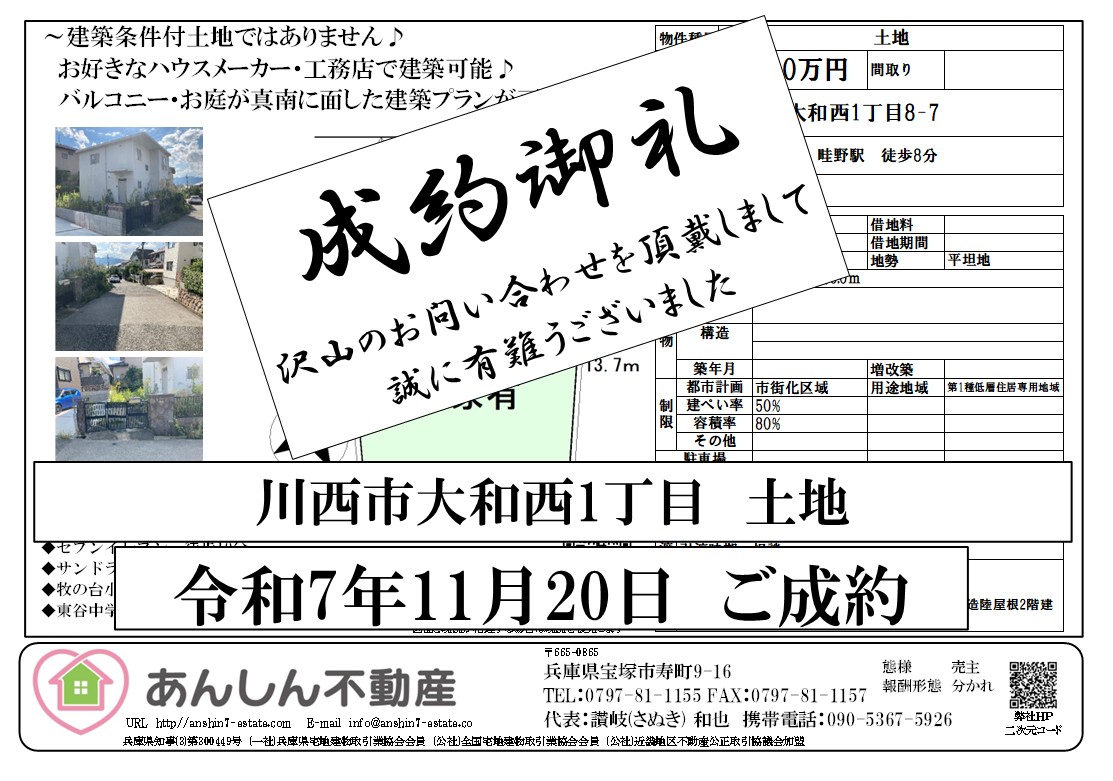 成約御礼 川西市大和西1丁目 土地
